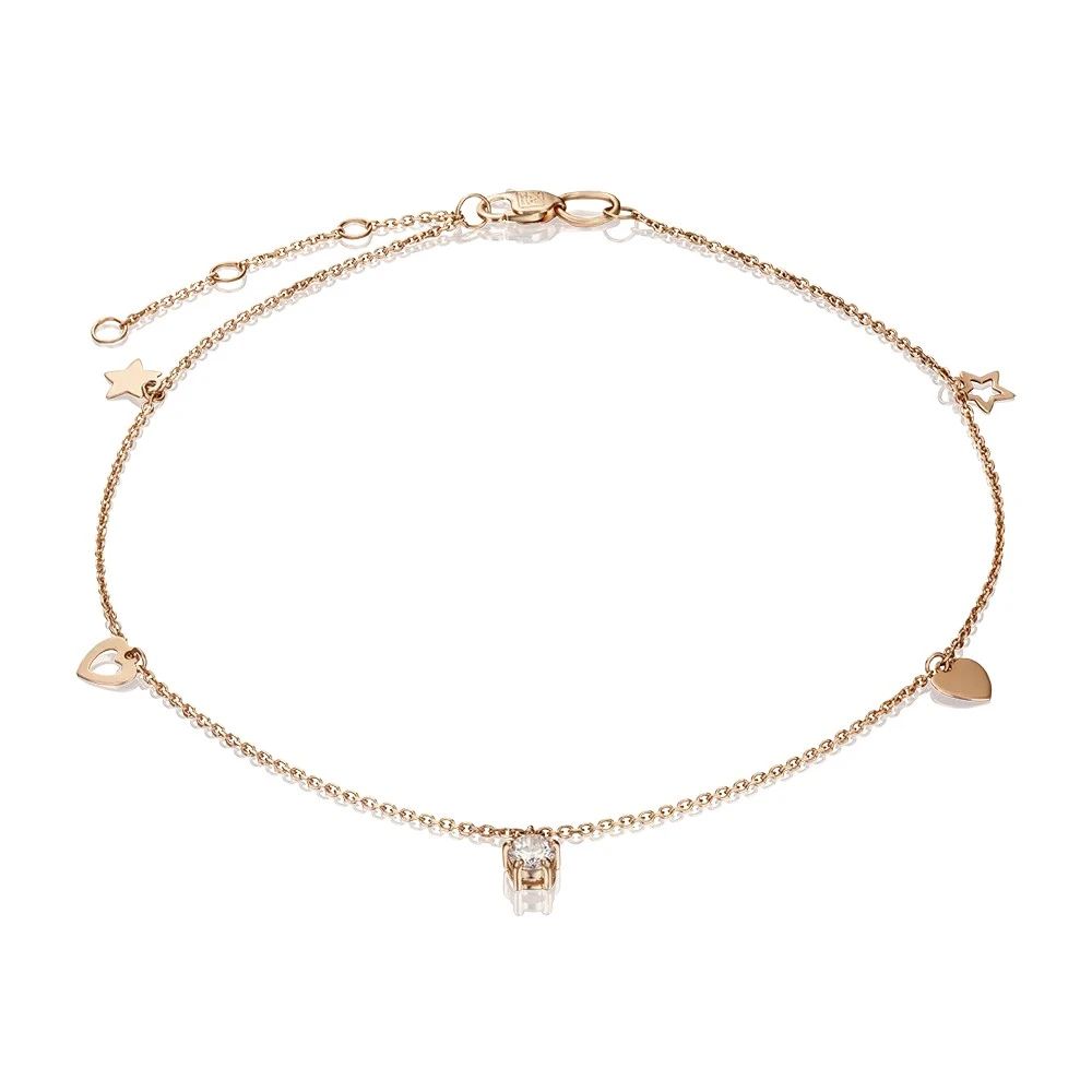 Fußkette aus 585er Rotgold mit funkelnden Zirkonia