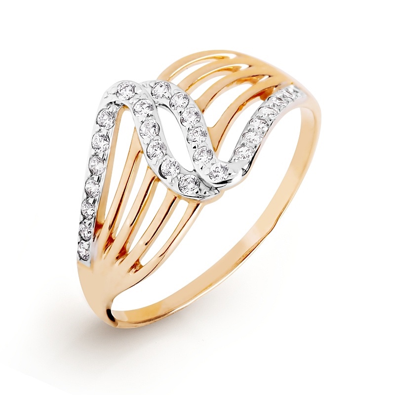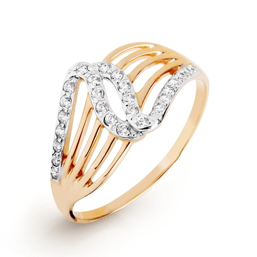 Женское кольцо из красного золота 585 пробы. Украшено белыми фианитами.